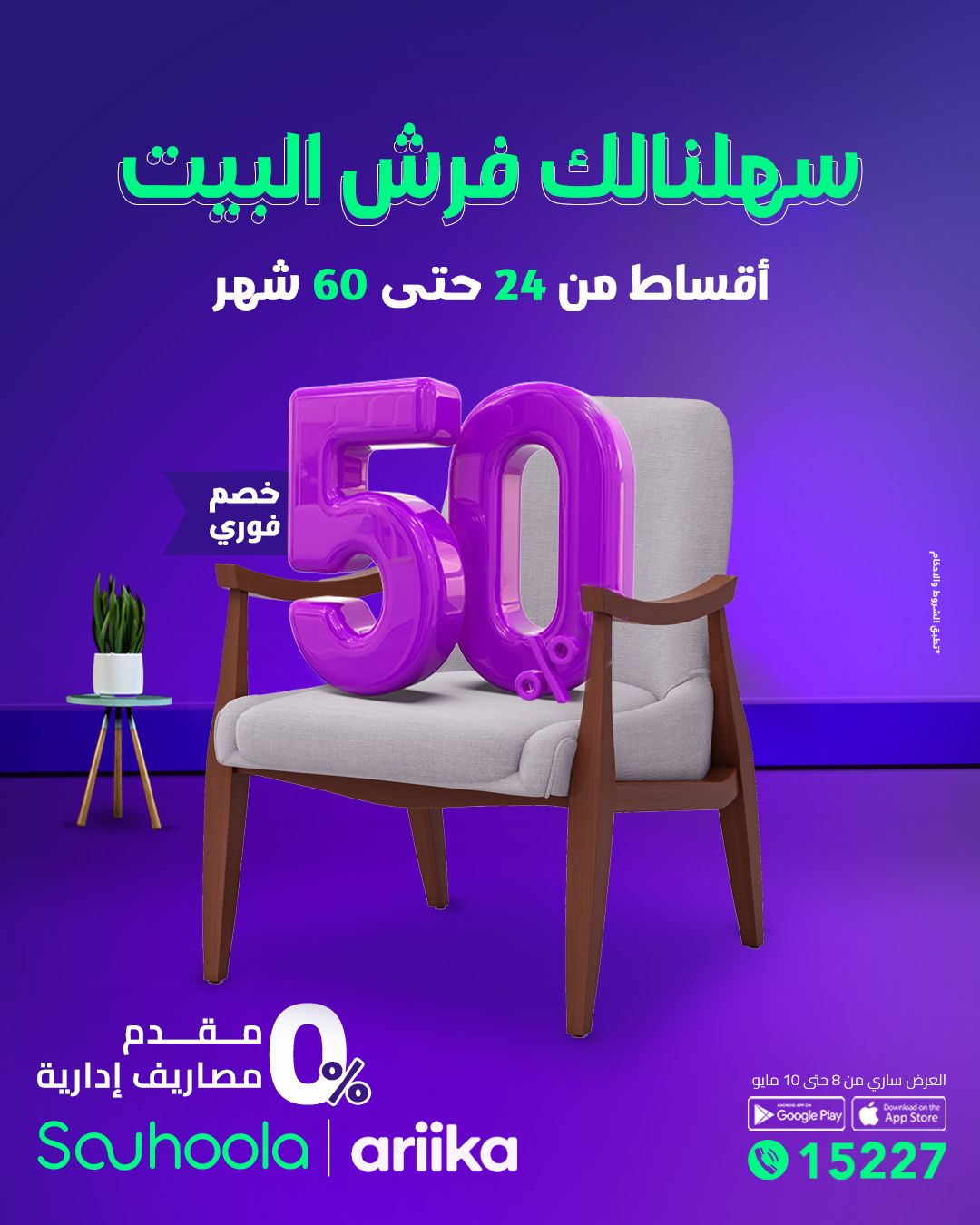 وقالت الشركة إن العرض يشمل :” 50% خصم فوري و بدون مقدم وبدون مصاريف إدارية “.