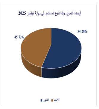 إلا أن الذكور يستحوذون على النسبة الأكبر من أرصدة التمويل كما هو موضح بالشكل التالي