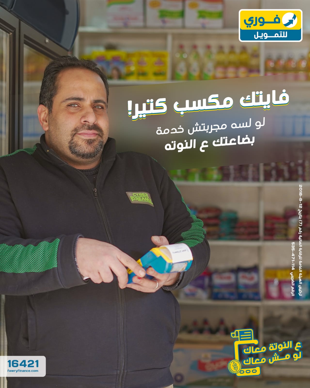 تُوفر شركة فوري للتمويل ، إحدى أكبر شركات التمويل في مصر، خدمة “بضاعتك ع النوته” للتجار حيث توفر رصيد مقدم للتاجر يصل إلى 150 ألف جنيه حيث يستطيع التاجر استخدام هذا الرصيد في دفع خدمات فوري المختلفة .