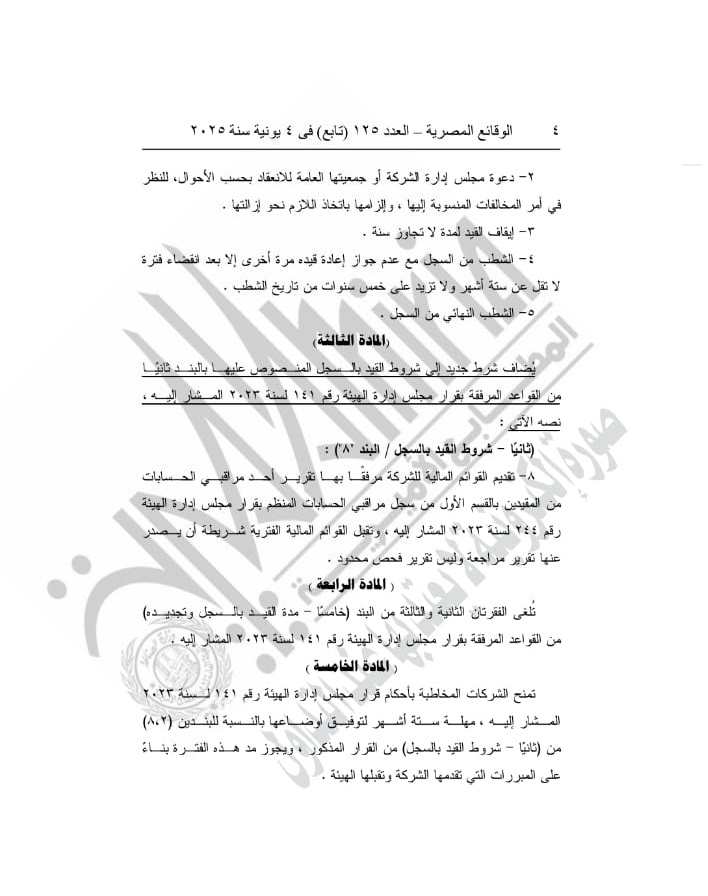 الرقابة المالية تُدخل تعديلات جديدة على ضوابط ممارسة نشاط التخصيم
