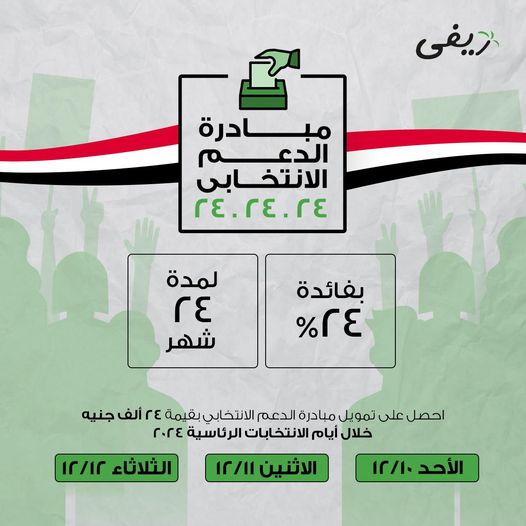 طرحت شركة ريفي لتمويل المشروعات متناهية الصغر مبادرة الدعم الإنتخابي تحت مسمى ” 24.24.24 “.